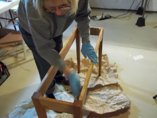Not too shabby, huh? Now, I know some of you are going to say, "Hey, you put the lid on in reverse. That should be on the outside." Nope. The beautiful beveling in the wood should be seen when the case is open, not when it's closed. These little instruments are not meant for performance. They were designed to be practice instruments. No one was going to see (much less hear) the instrument in a concert setting. And when the instrument wasn't being used, it was most likely stored under a bed or somewhere else out of sight. Fancy case as a piece of furniture not required. Flash forward to 2013. If you want to be authentic, you put the plain side out so that you open up with the pretty side facing you when you're practicing. And even if you don't agree with my logic, there is actually one decent picture of the instrument supplied with the manual that clearly shows the lid attached as I attached it.