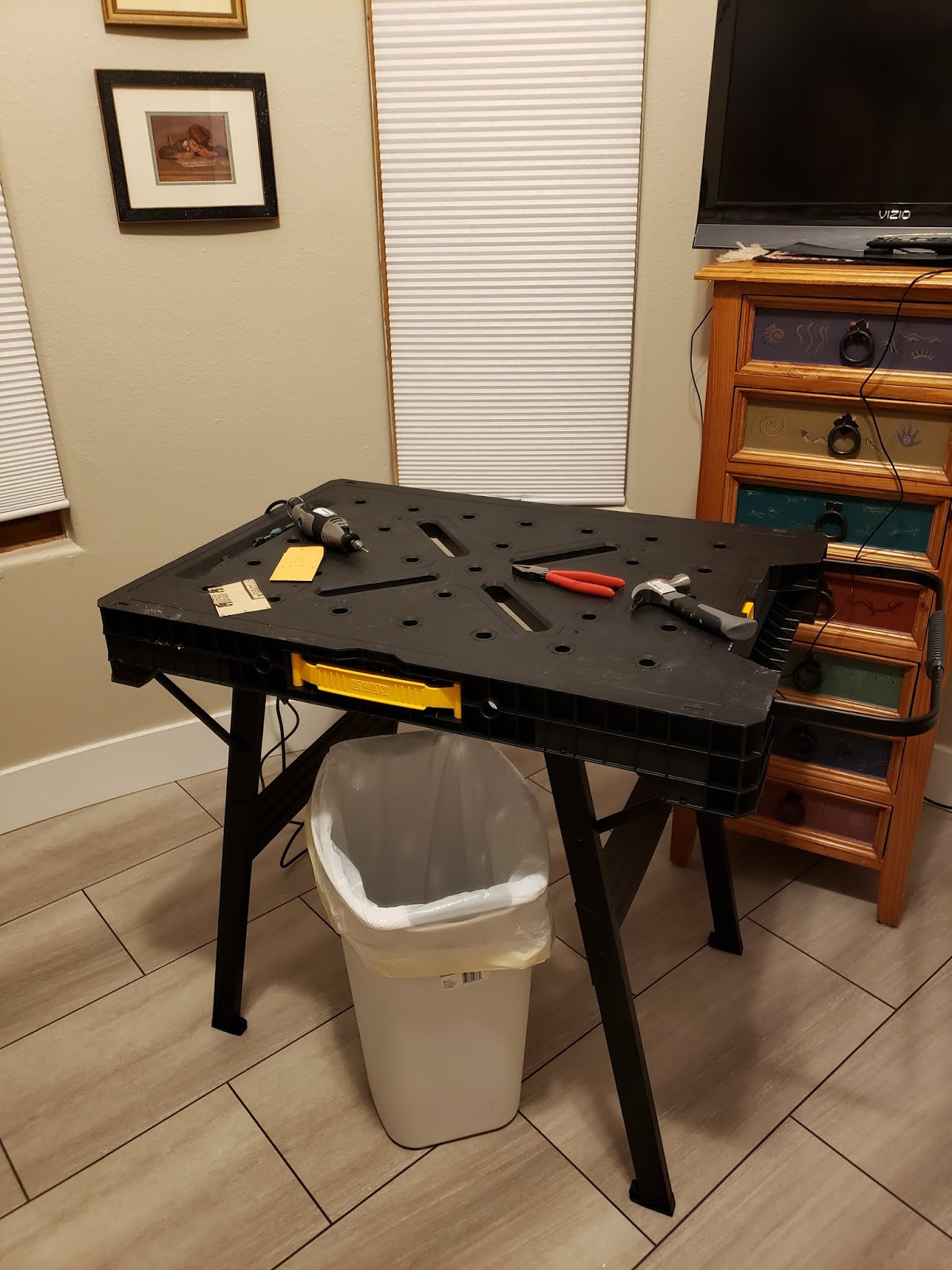 In case you're wondering, my little workbench is a nifty, collapsible DeWalt. I'm the kind of mom who asks for stuff like this for Christmas, and my son obliges.